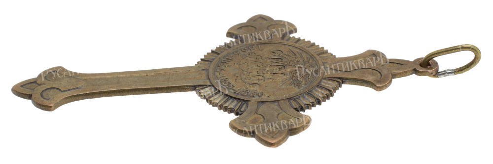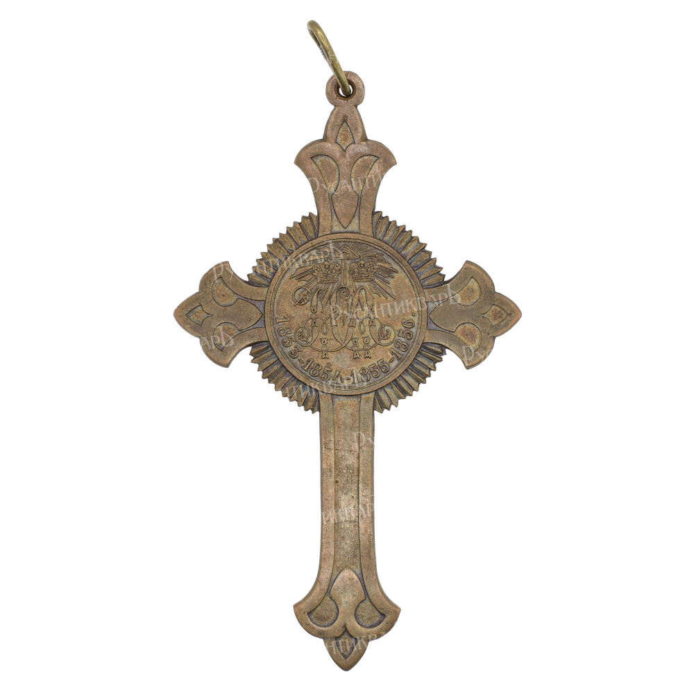 Учрежден 26 августа 1856 г. СПб Монетный двор, 1856 - 1862 гг. Темная бронза, 34 гр. Размеры 102.9 × 59.4 мм. Сохранность очень хорошая (XF+). М. Е. Дьяков "Медали Российской Империи" № 654.1 (R1). В. В. Биткин "Сводный каталог медалей России. Наградные медали для ношения" т. 2, № 963 (R). Было отчеканено около 40.000 крестов. Довольно редкий (Р).