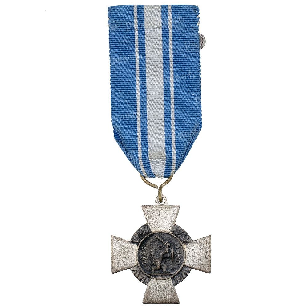 Учреждён в 1940 г. Стокгольм, шведская фирма "Спорронг и Ко" (Sporrong & Co), 1940 г. Дизайн разработал финский художник, генерал - майора Вооруженных Сил Финляндии Аарно Каримо (г. ж. 1886 - 1952 гг) . Томпак (сплав меди и никеля), серебрение, эмаль 11.5 гр. Размеры 38.7 х 35.2 мм. Сохранность отличная (UNC-).Тарас Д. А. "Боевые награды союзников Германии во II Мировой войне" стр 132. Глушко В. В. "Ордена, медали, памятные знаки Финляндии 1809 - 2009", стр 172, № 417. Borna Barac "Reference Catalogue Orders, Medals and Decorationsof the World", Croatia, Zagreb, 2013. Том 2, стр 496 № 64. Довольно редкий (Р).