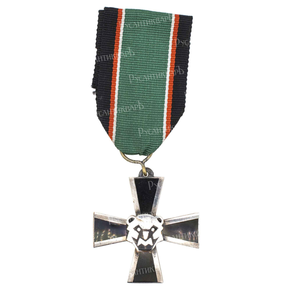 Утверждён в 1956 г. Производственное изготовление фирмы А. Тилландера (A. Tillander), Хельсинки, 1956 г. Оксидированное железо, серебрение, эмаль, 10.4 гр. Размеры 42.5 х 38.9 мм. Сохранность отличная (UNC-). Тарас Д. А. "Боевые наградысоюзников Германии во II Мировой войне" стр 135. Глушко В. В. "Ордена, медали, памятные знаки Финляндии 1809 - 2009", стр 180, № 452. Borna Barac "Reference Catalogue Orders, Medals and Decorationsof the World", Croatia, Zagreb, 2013. том 2, стр 499, № 80. Довольно редкий (Р).