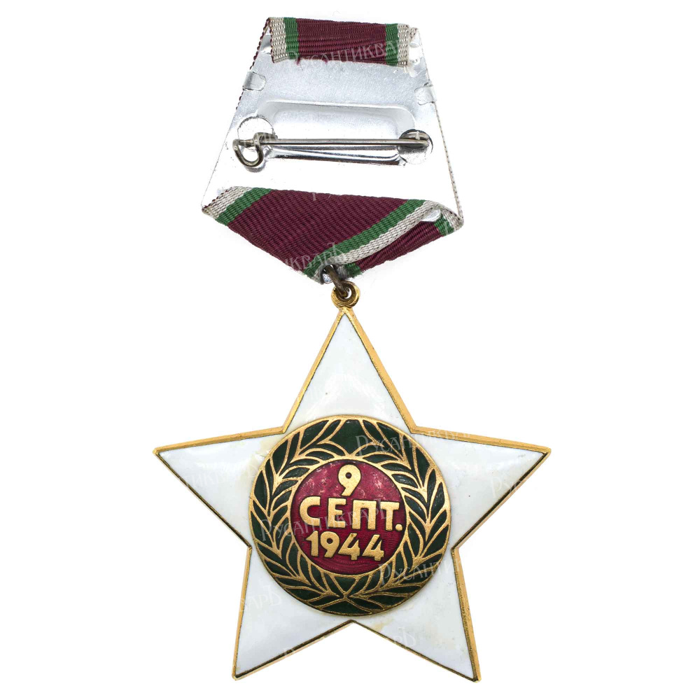 Учреждён 9 сентября 1945 г. Первоначально изготавливался ювелирной мастерской в Софии до 1952 г, а позднее - на Болгарском Государственном Монетном дворе, 1953 - 1990 гг. Дизайн разработал болгарский художник Борис Димитров Ангелушев (г. ж. 25 октября 1902 - 24 августа 1966 гг). Бронза, золочение, эмаль, 42.78 гр. Размеры 56 х 56 мм. Сохранность отличная (UNC). Выдано около 71.000 экз всех степеней.