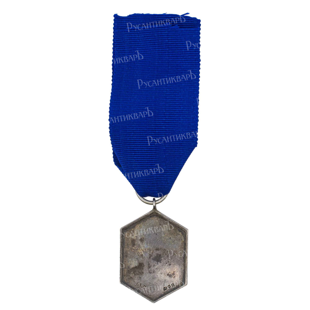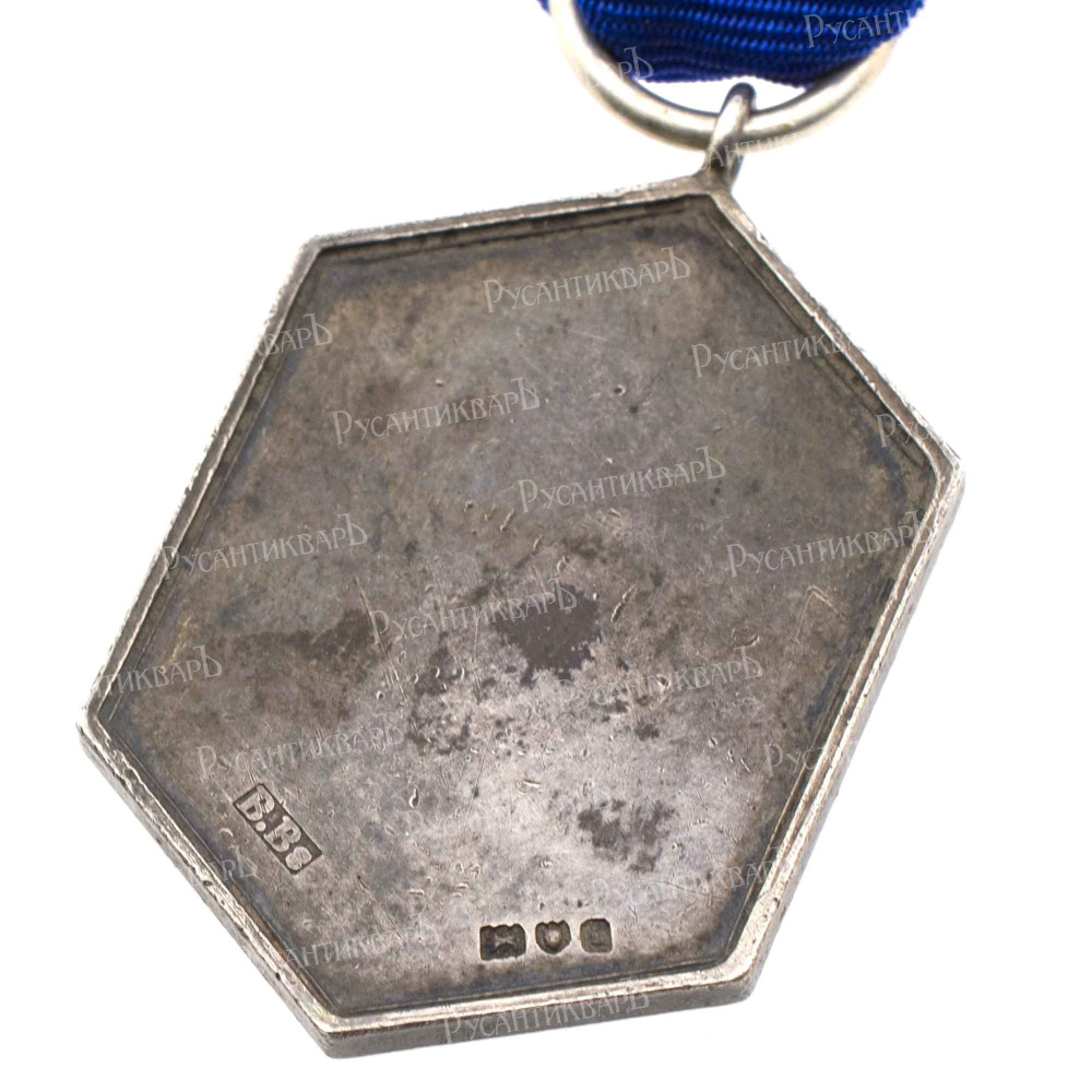 Ассоциации воздержания Королевской Армии образована в 1902 г. Лондон, ювелирная мастерская "B.Bs", 1904 г. На оборотной стороне клейма: фирма производитель "B.Bs"; "идущий лев" (серебро 925 пробы); "голова леопарда" (городское клеймо Лондона); "i" (год производства - 1904). Серебро, 14.36 гр. Размеры 39.90 х 25.84 мм. Сохранность очень хорошая (XF).
