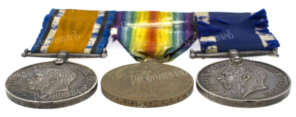 Учреждена 26 июля 1919 г в период правления Короля Георга V (г. ж. 3 июня 1865 - 20 января 1936 гг). Лондон, Королевский Монетный двор, 1919 - 1921 гг. Дизайн лицевой стороны выполнил австралийский скульптор и медальер Эдгар Бертрам Маккеннал (12 июня 1863 - 10 октября 1931 гг), стоят инициалы "ВМ". Дизайн оборотной стороны выполнил шотландский скульптор Уильям Макмиллан (31 августа 1887 - 25 сентября 1977 гг), стоят инициалы "WMсМ". На гурте пуансоном выбито "L. 8808 G E T FLEET O S 3 R N". Серебро, 33.4 гр. Диаметр 36.3 мм. Сохранность очень хорошая (XF). Borna Barac "Reference Catalogue Orders, Medals and Decorationsof the World", Croatia, Zagreb, 2013. том 2, стр 428, № 159. Изготовлено 6.5 миллионов из серебра и 111.000 из бронзы.