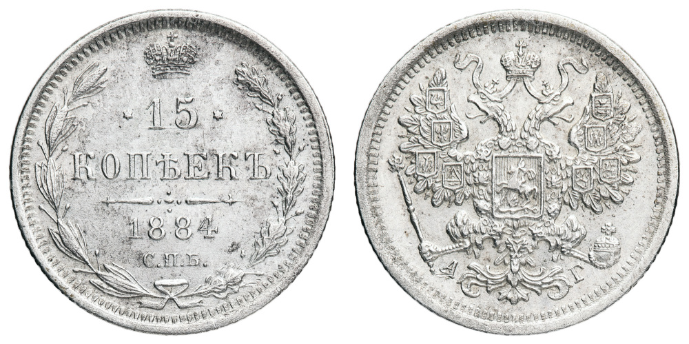 15 копеек 1884 год "СПБ - АГ".