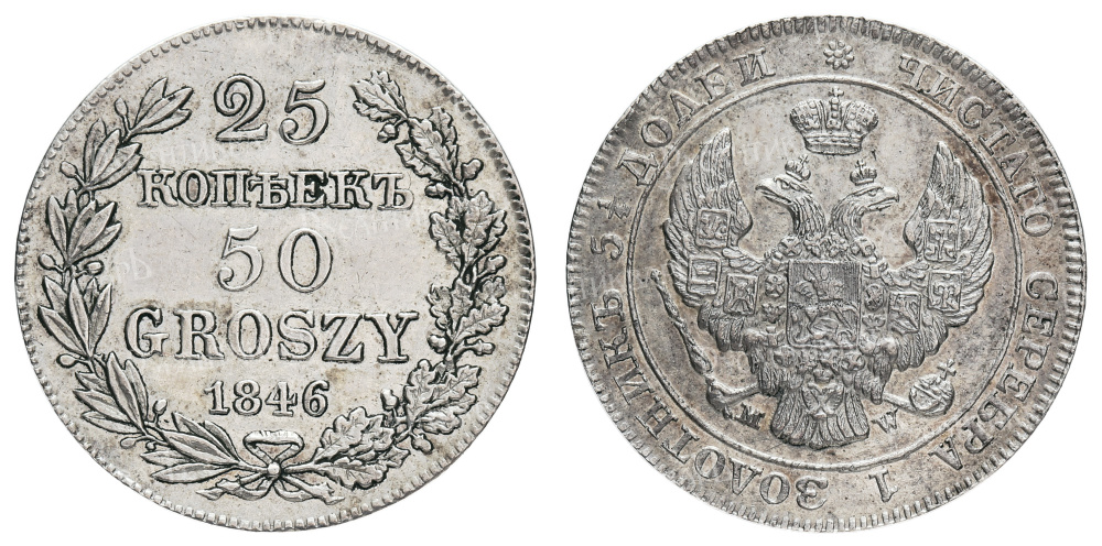 25 копеек 50 злотых 1846 год "MW".