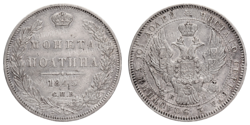 Полтина 1845 год "СПБ - КБ".