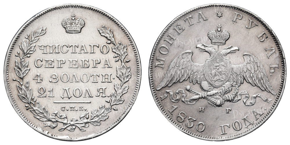 Период правления Императора Николая I (19 ноября 1825 - 18 февраля 1855 гг). СПб Монетный двор. Серебро, 20.63 гр. Тираж 6.010.007 экз. В. В. Биткин "Сводный каталог монет России" № 109. Cохранность AU.