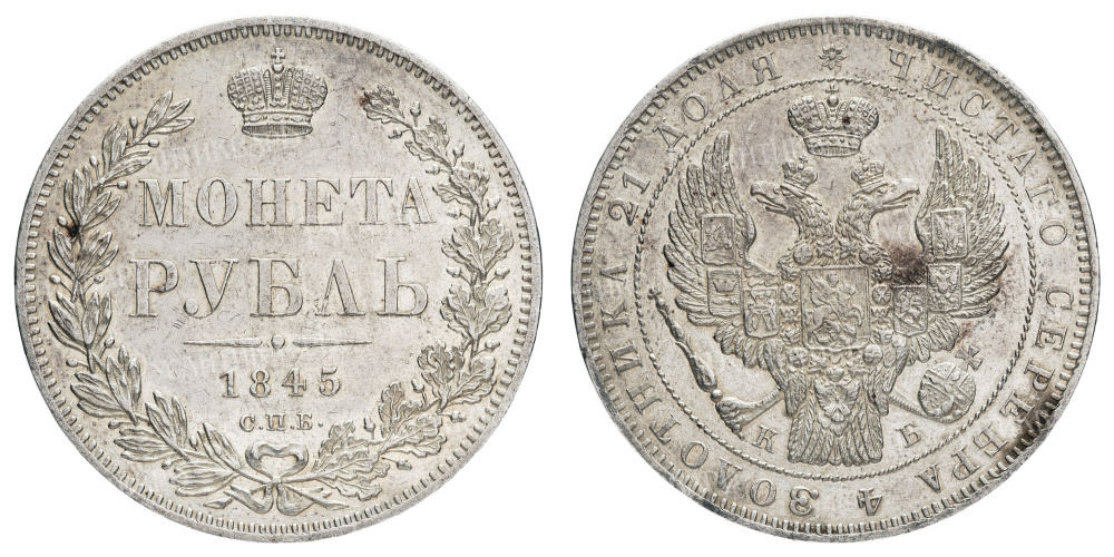 Рубль 1845 год "СПБ - КБ" (R1)