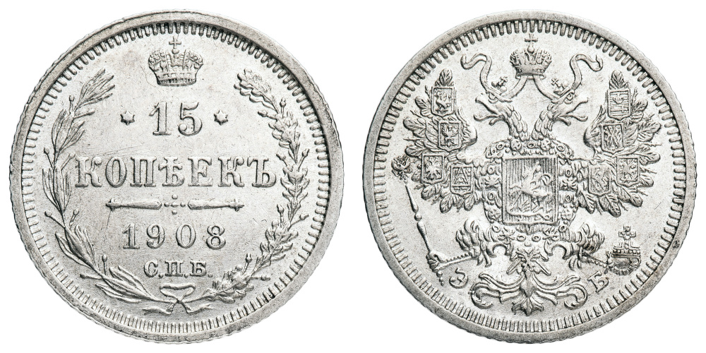 Период правления Императора Николая II (20 октября 1894 - 2 марта 1917 гг). СПБ Монетный двор. Серебро, 2.73 гр. Тираж 29.000.007 экз. Сохранность UNC.