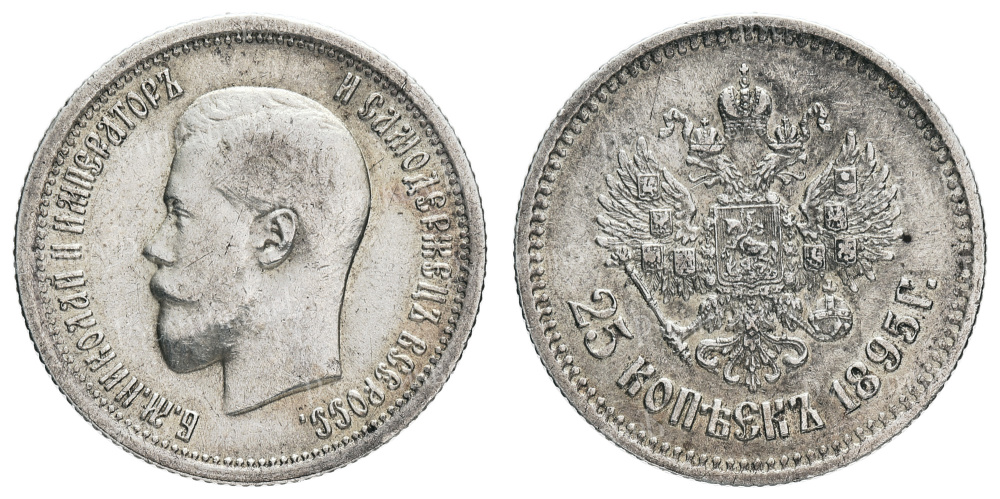 Период правления Императора Николая II (20 октября 1894 - 2 марта 1917 гг). СПб Монетный двор. Серебро, 5.05 гр. Тираж 1.000.004 экз. Сохранность AU.