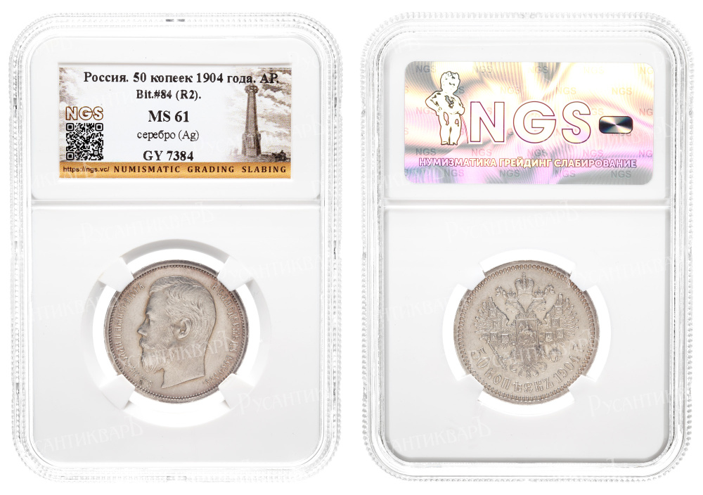 50 копеек 1904 год "АР" (R2) в слабе NGS, MS 61.