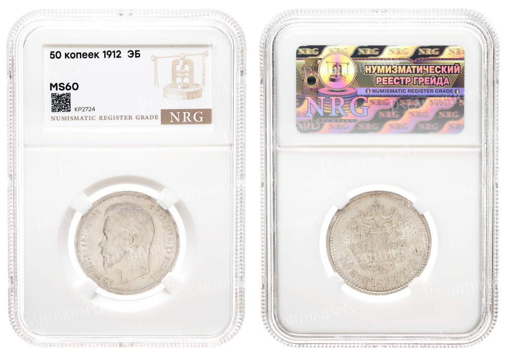 50 копеек 1912 год "ЭБ" в слабе NRG, MS 60.