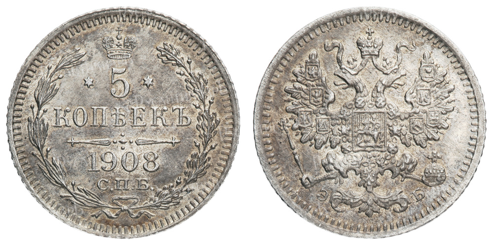 Период правления Императора Николая II (20 октября 1894 - 2 марта 1917 гг). СПб Монетный двор. Серебро, 0.85 гр. Тираж 400.000 экз. Сохранность UNC.