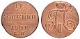 Период правления Императора Павла I (6 ноября 1796 - 12 марта 1801 гг). Екатеринбургский Монетный двор. Медь, 23.17 гр. Тираж 27.379.884 экз. В. В. Биткин "Сводный каталог монет России" № 118. Сохранность AU.