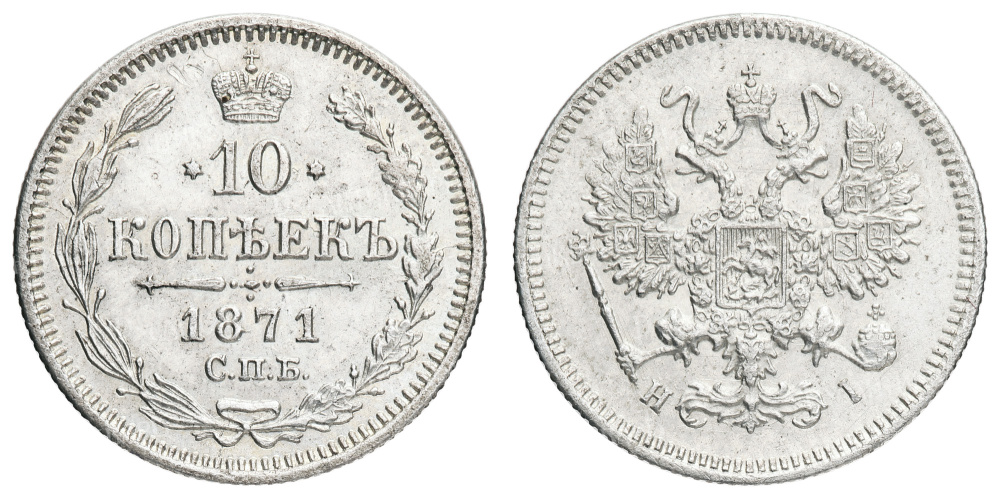 10 копеек 1871 год "СПБ - HI".