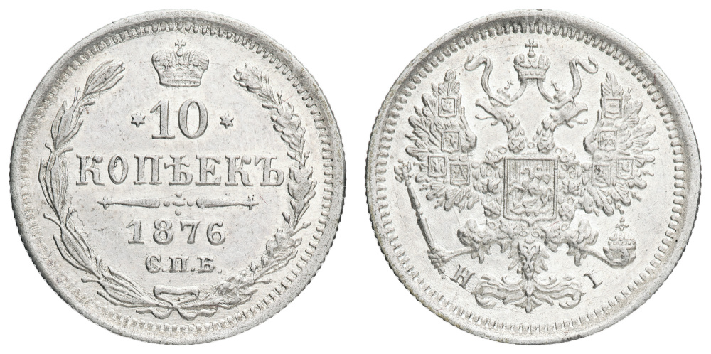 10 копеек 1876 год "СПБ - HI".