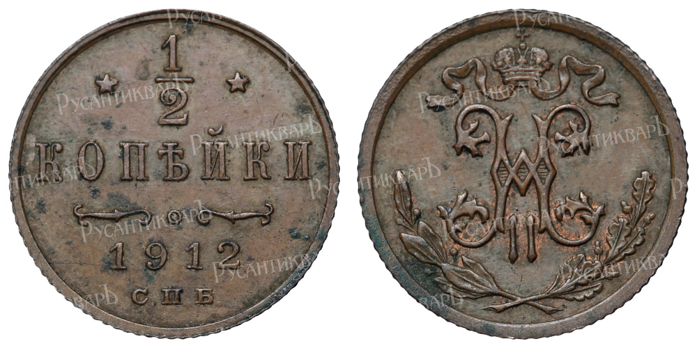 1/2 копейки 1912 год "СПБ".