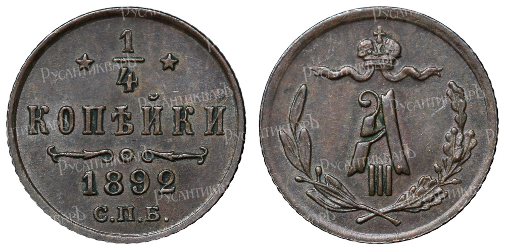 1/4 копейки 1892 год "СПБ".