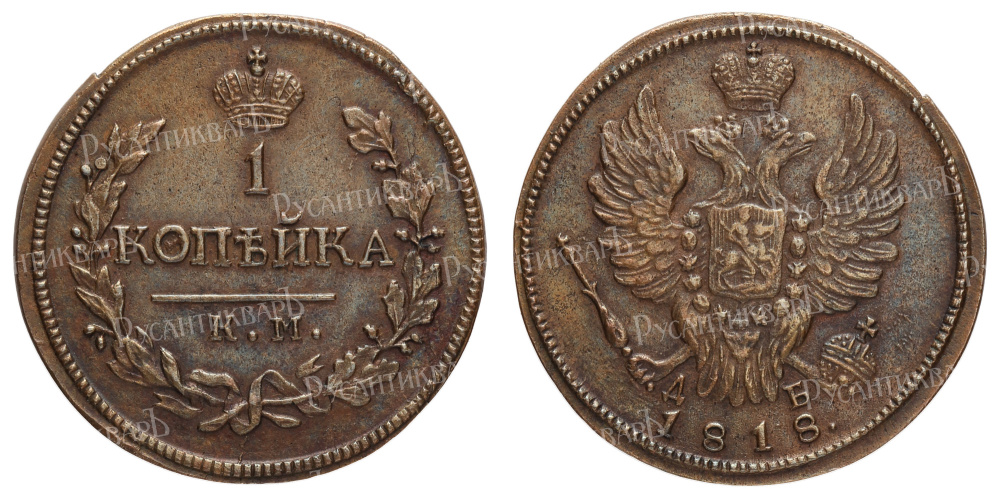 1 копейка 1818 год "КМ - ДБ"