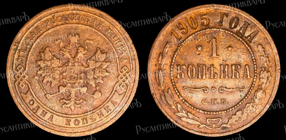 Период правления Императора Николая lI (20 октября 1894 - 2 марта 1917 гг). СПб Монетный двор. Медь, 3.22 гр. Тираж 31.000.000 экз. Сохранность XF.