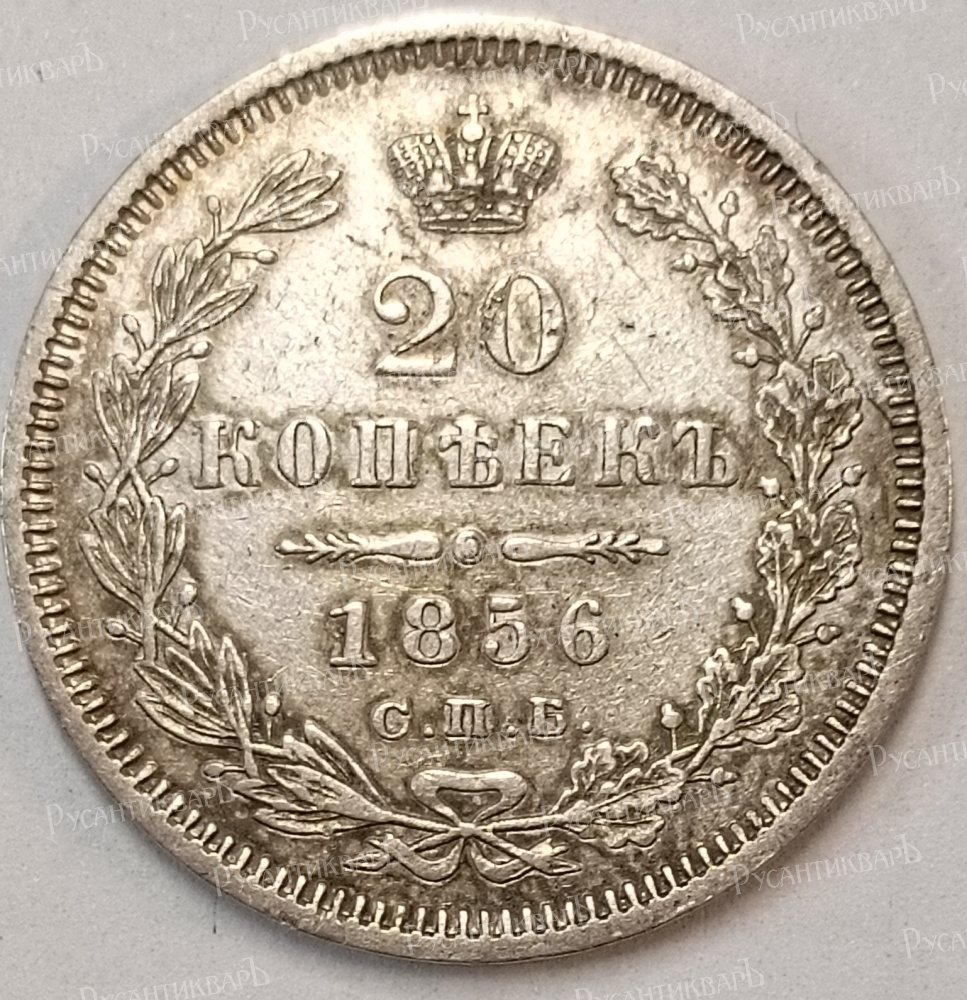 20 копеек 1856 год "СПБ - ФБ".