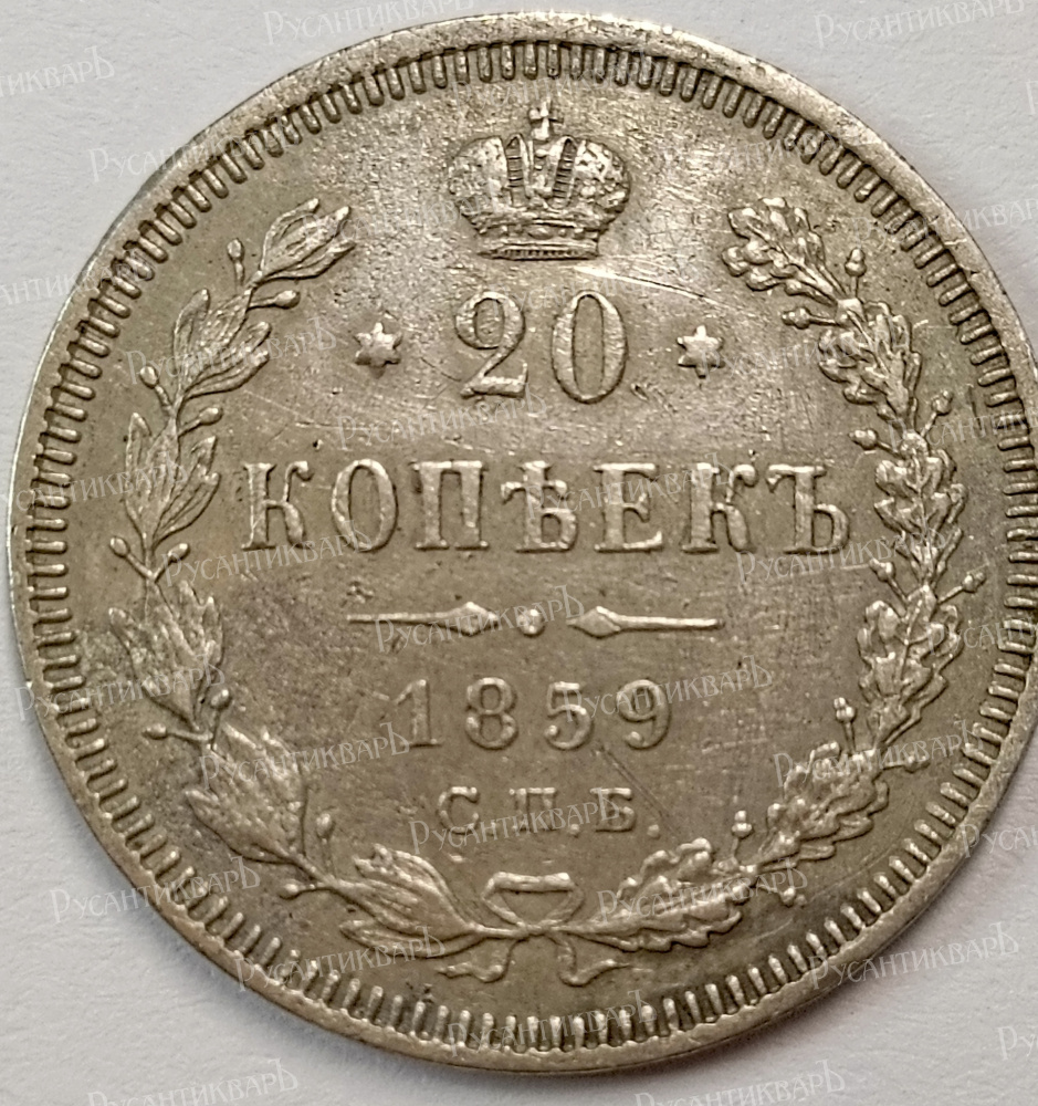 20 копеек 1859 год "СПБ - ФБ".