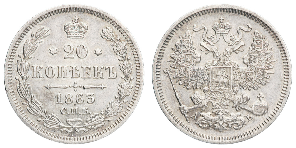 20 копеек 1863 год " СПБ - АБ".