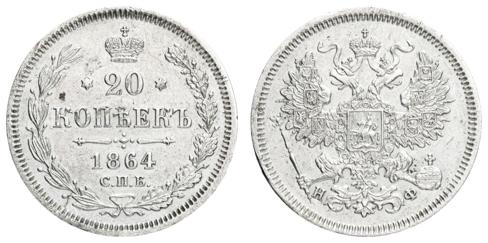 20 копеек 1864 год "СПБ - НФ".