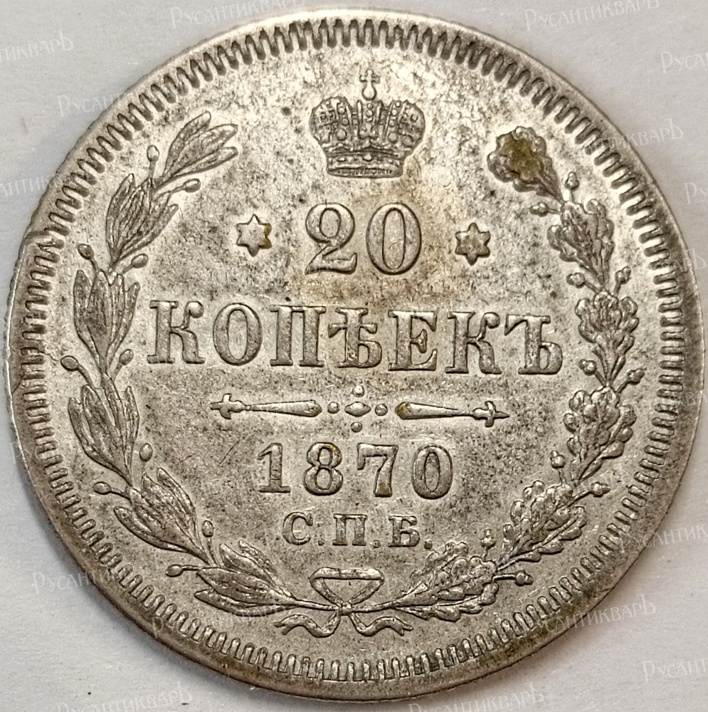 20 копеек 1870 год "СПБ - HI".