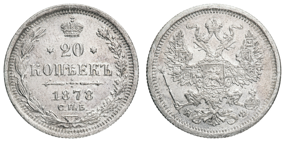 20 копеек 1878 год "СПБ - НФ".