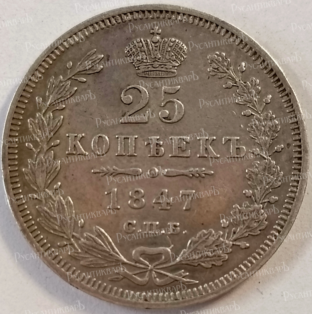 25 копеек 1847 год "СПБ - ПА".