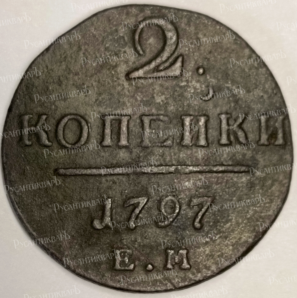 Период правления Императора Павла I (6 ноября 1796 - 12 марта 1801 гг). Екатеринбургский Монетный двор, 1797 год. Медь, 20.48 гр. Тираж - 4.913.900 экз. В. В. Биткин "Сводный каталог монет России" № 111. Сохранность AU.