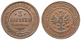 Период правления Императора Николая lI (20 октября 1894 - 2 марта 1917 гг). СПб Монетный двор. Медь, 9.78 гр. Тираж 12.666.675 экз. Сохранность XF.