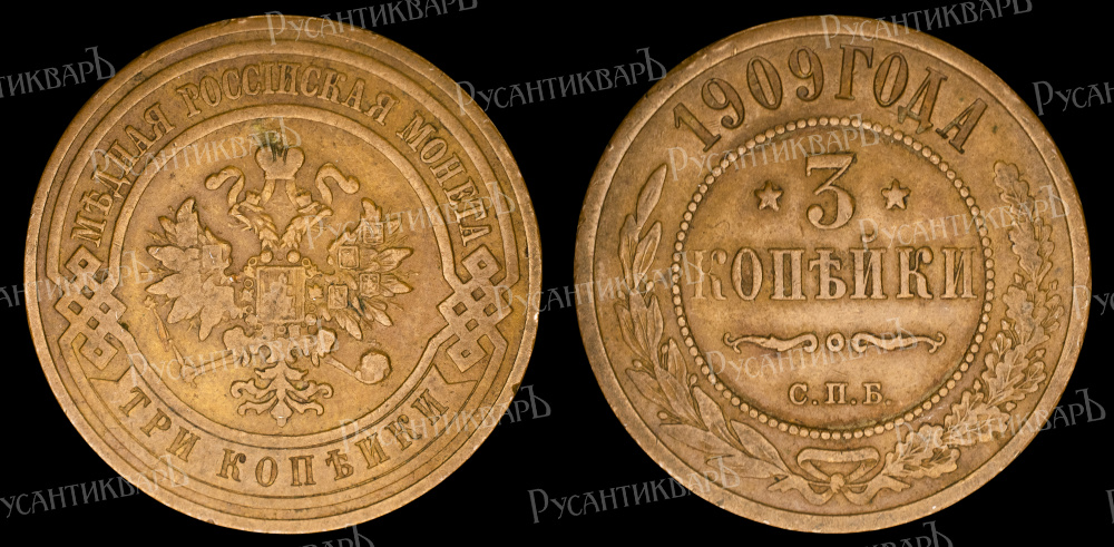 3 копейки 1909 год "СПБ".