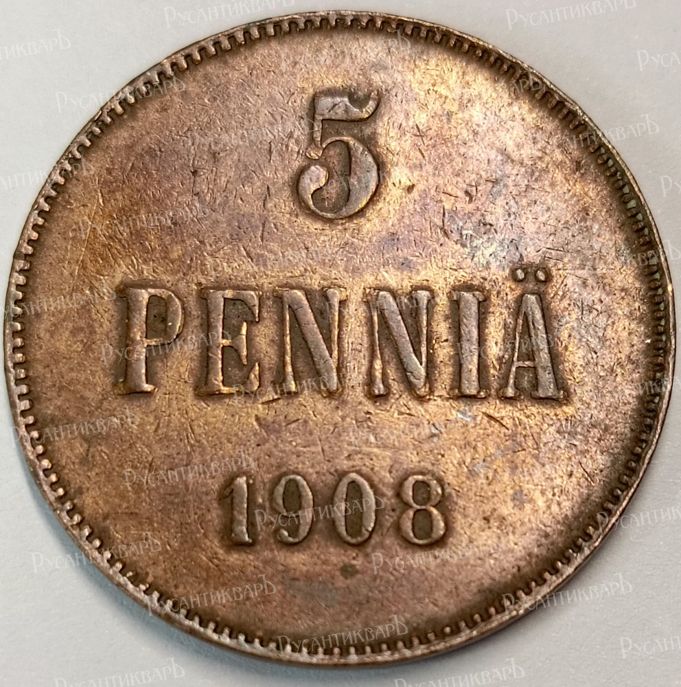 Период правления Императора Николая lI (20 октября 1894 - 2 марта 1917 гг). Гельсингфорсский Монетный двор. Медь, 6.48 гр. Тираж 1.664.615 экз. Сохранность XF+.
