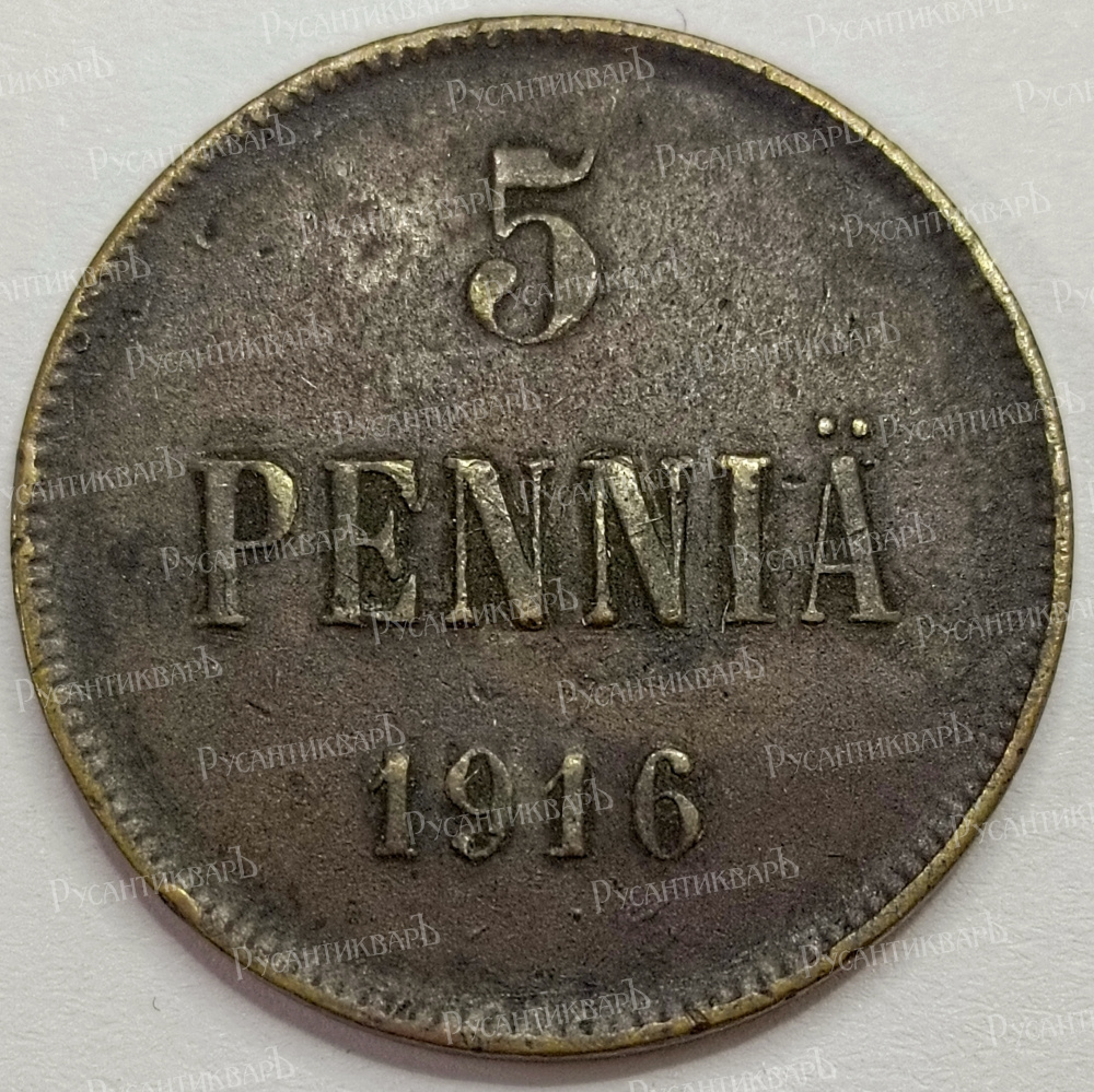 Период правления Императора Николая lI (20 октября 1894 - 2 марта 1917 гг). Гельсингфорсский Монетный двор. Медь, 6.45 гр. Тираж 4.463.000 экз. Сохранность XF.
