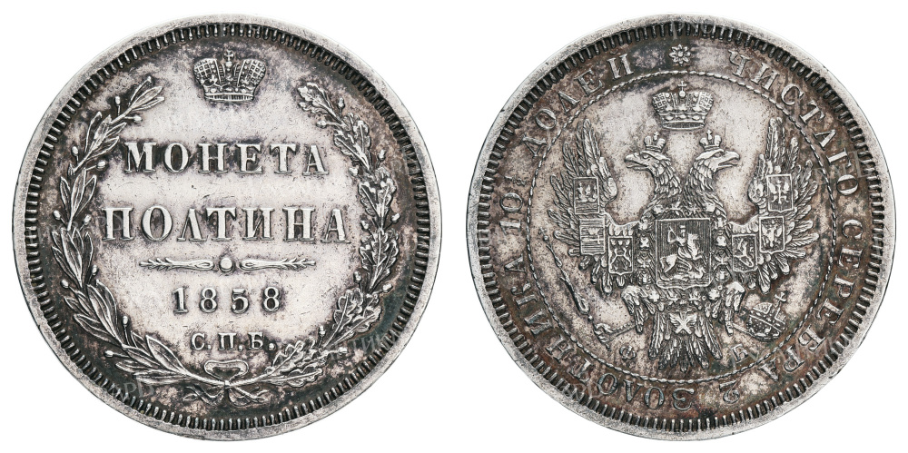 Полтина 1858 год "СПБ - ФБ".