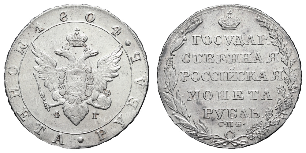 Рубль 1804 год "СПБ - ФГ" в слабе NRG, AU 58.