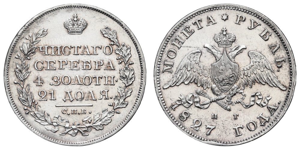Период правления Императора Николая I (19 ноября 1825 - 18 февраля 1855 гг). СПб Монетный двор. Серебро, 20.76 гр. Тираж 584.005 экз. В. В. Биткин "Сводный каталог монет России" № 104, короткие ленты. Сохранность AU.