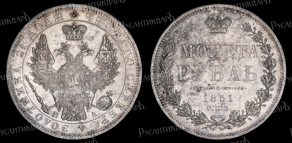 Рубль 1851 год "СПБ - ПА".
