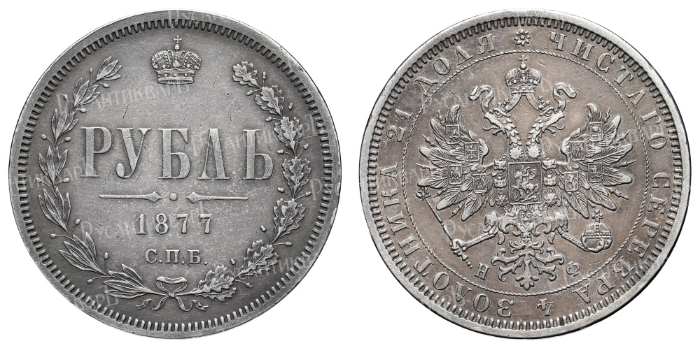 Период правления Императора Александра II (18 февраля 1855 - 1 марта 1881 гг). СПб Монетный двор. Серебро, 20.70 гр. Тираж 6.923.003 экз. В. В. Биткин "Сводный каталог монет России" № 91. Сохранность AU 53.