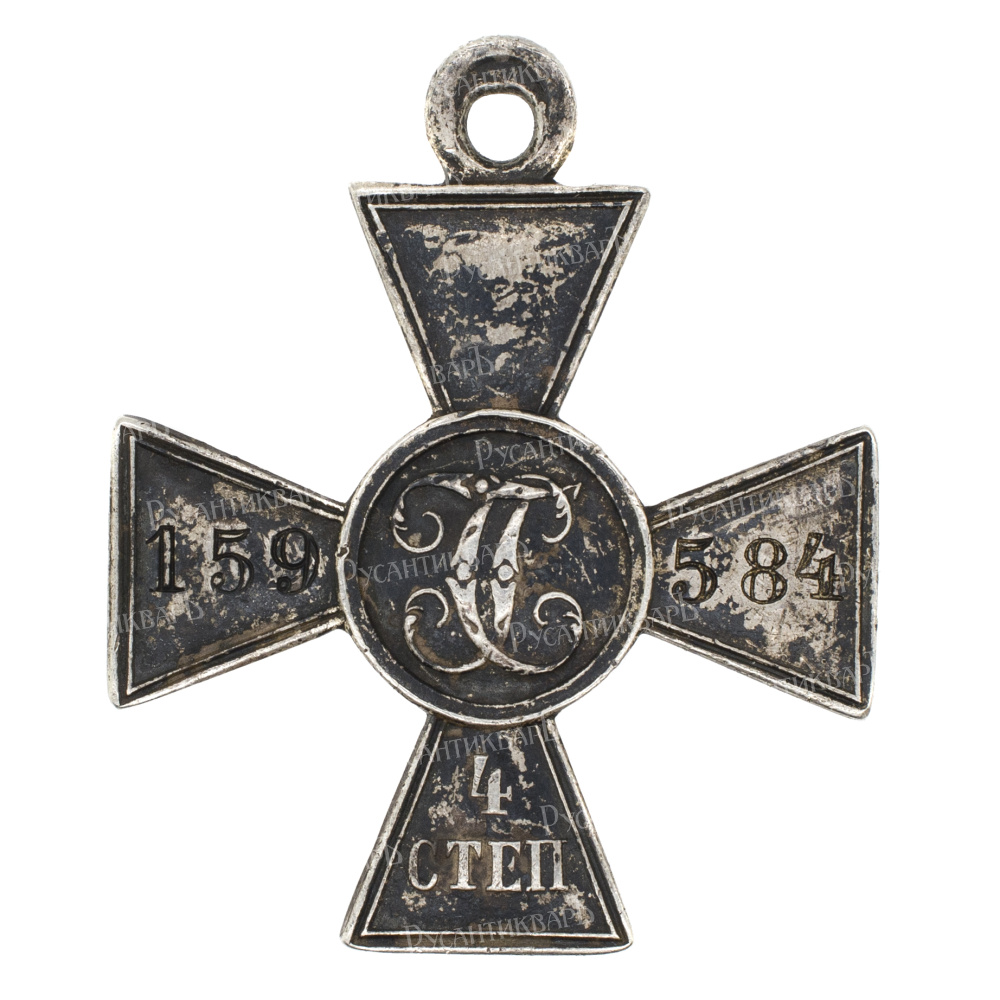 Георгиевский Крест 4 ст за номером 159.584 выдан за отличие во время Первой Мировой войны 1914 - 1918 гг. ФИО кавалера не установлена.