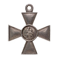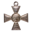 Учреждён 13 февраля 1807 г в период царствования Императора Александра I (12 марта 1801 - 19 ноября 1825 г) первоначально без степени и назывался Знаком Отличия Военного ордена (ЗОВО). Медальер - Авраам Авенирович Грилихес (1849 - 1912 гг). Петроградский Монетный двор, 1915 г Серебро 99", 11.1 гр. Размеры 40.97 х 34.3 мм. На оборотной стороне пуансоном выбито "296.782". Сохранность очень хорошая (XF-). М. Е. Дьяков "Медали Российской Империи" № 1132.8 (R1). В. В. Биткин "Сводный каталог медалей России. Наградные медали для ношения" т. 2, № 1099.6. За период с 1 января 1914 по 1 января 1917 гг Георгиевских Крестов 4 ст было изготовлено 1.190.150 шт (№ 1 - № 1.210.150). Несоответствие количества объясняется использованием крестов из старых запасов - невручённых ЗОВО (перерезанные номера).