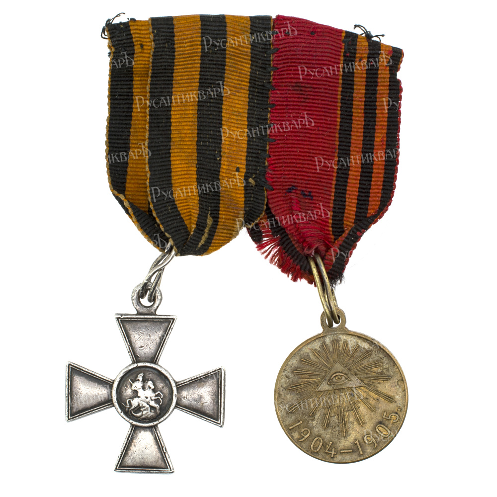 Колодка на две награды. Знак отличия Военного Ордена 4 ст. 141.790 и медаль "В память Русско - Японской войны 1904 - 1905 гг" светлая бронза.