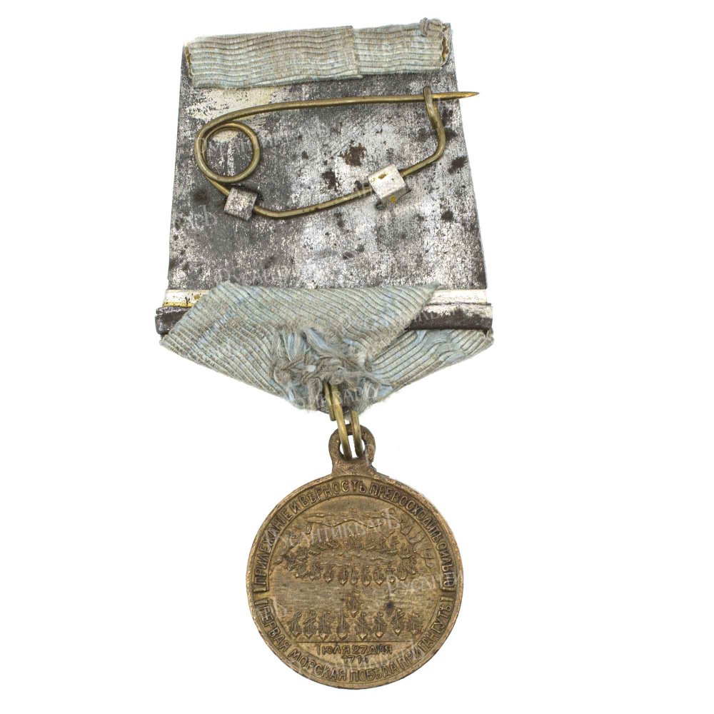 Медаль должна была носиться на груди, на ленте ордена Св. Андрея Первозванного с цепями на колодке.