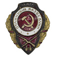 Учрежден Указом Президиума Верховного Совета СССР от 10 сентября 1943 г. На прижимной гайке надпись "Ш.М.З. Н.К.П.С". Бронза, золочение, эмаль, гр. Размеры мм. Сохранность отличная (UNC-). Айрапетян Б.В. "Нагрудные знаки Красной Армии (1941 - 1945)" стр 107, 157.