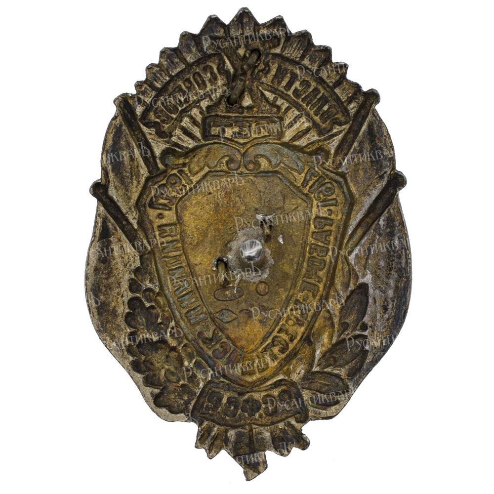 Учрежден правительством РСФСР 10 октября 1927 г. Москва, неизвестная мастерская, 1927 г. Клейма: на оборотной стороне знака под винтом - Московского окружного пробирного управления с пробой металла [875, голова рабочего, вправо, дельта] в овальном щитке; знак удостоверения [голова рабочего, вправо, в круглом щитке] и именное "СМ" в щитке в форме ромба; на прижимной пластине - Московского окружного пробирного управления в круглом щитке [женская головка в кокошнике, вправо, точка за затылком] и именное "СМ" в щитке в форме ромба. Серебро, позолота, эмаль, 19.6 гр. Размеры 50.92 х 35.1 мм. Сохранность отличная (UNC-). Зак А. С. "Нагрудные и служебные знаки правоохранительных органов СССР 1918 - 2000", № 2.1.7. Весьма редкий (Р2) .