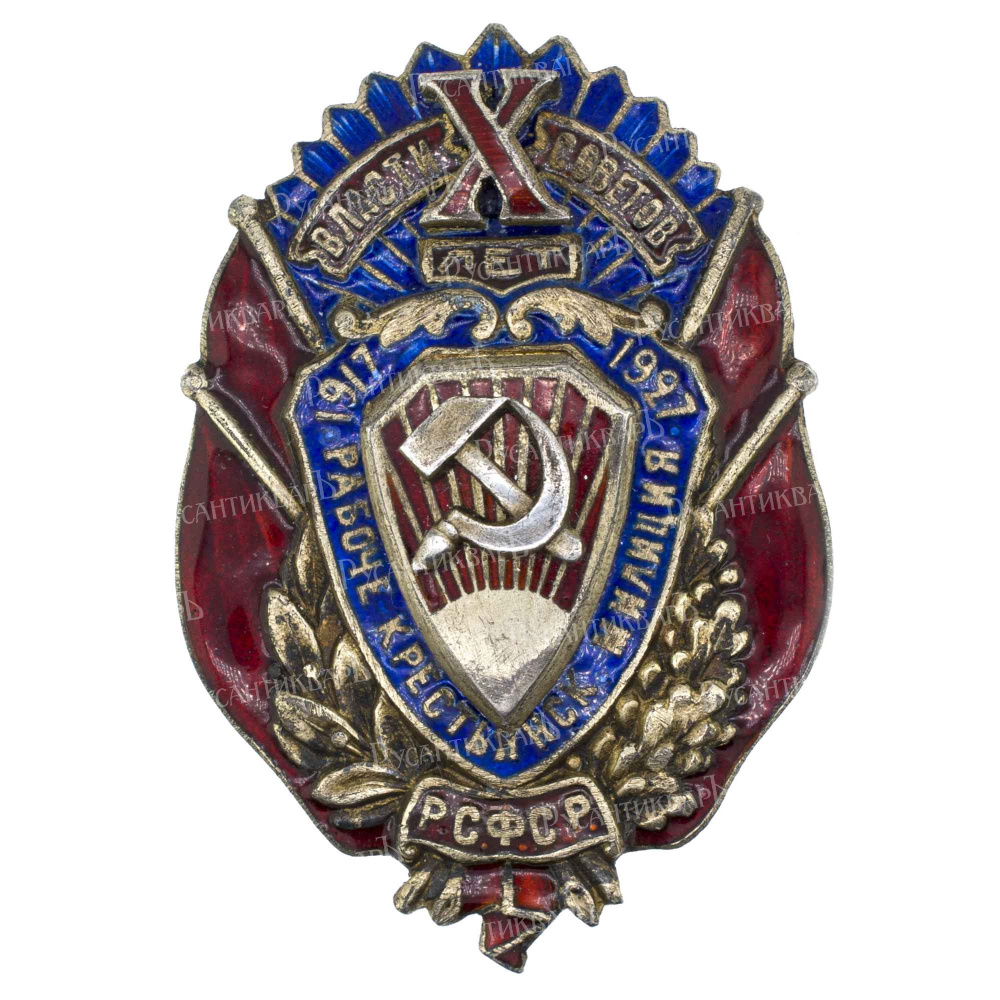 В 1927 г в СССР широко отмечалась 10 - я годовщина Октября. Центральным административным управлением НКВД было предусмотрено награждение памятным знаком лиц, прослуживших в милиции пять и более лет. Работникам со стажем от 5 до 7 лет вручался бронзовый знак, а со стажем более 7 лет - серебряный.