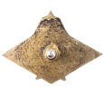Ленинград, артель "Трудгравёр", 1926 г. Серебро, эмаль, 4.72 гр. Размеры 16.63 × 24.64 мм. Сохранность отличная, гайка от другого знака (UNC-). Зак А. С., Калистратов В. Г., Воронченко И. Г. "Наградные знаки героев и ударников труда" № 1.5. Редкий (P1).