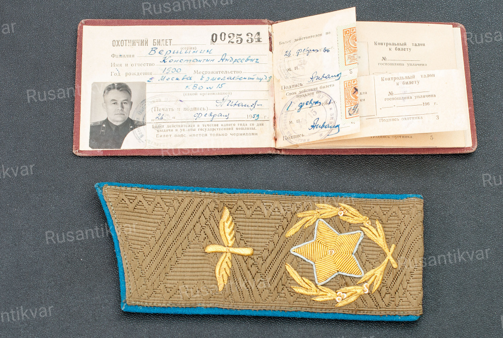Погон на повседневный китель Главного Маршала авиации Вершинина К.А. и удостоверение