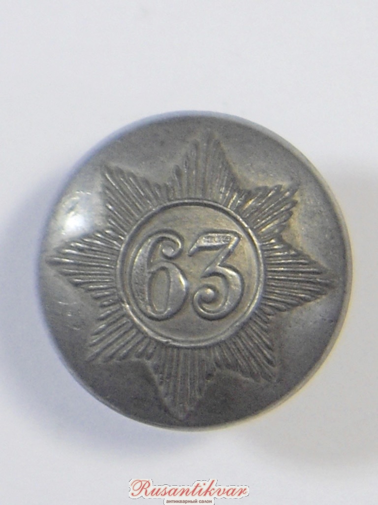 Пуговица офицера 63-го пехотного полка, 1830-1855, малая (14 мм)